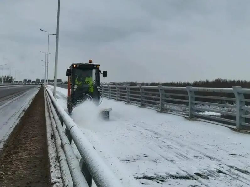 26日0點(diǎn)0時(shí),撫順項(xiàng)目在風(fēng)雪寒夜中啟動(dòng)抗冰除雪“零點(diǎn)行動(dòng)”,近700人嚴(yán)陣以待,73臺(tái)除雪車輛整裝待發(fā),以雪為令、聞雪而動(dòng),主干道大型除雪車火力全開,快速清除路面積雪;輔道和狹窄路段運(yùn)用小型手扶式掃雪機(jī)高效清理,連續(xù)奮戰(zhàn)15小時(shí),疏通道路140公里,清除積雪1500余噸,保障道路暢通無阻。