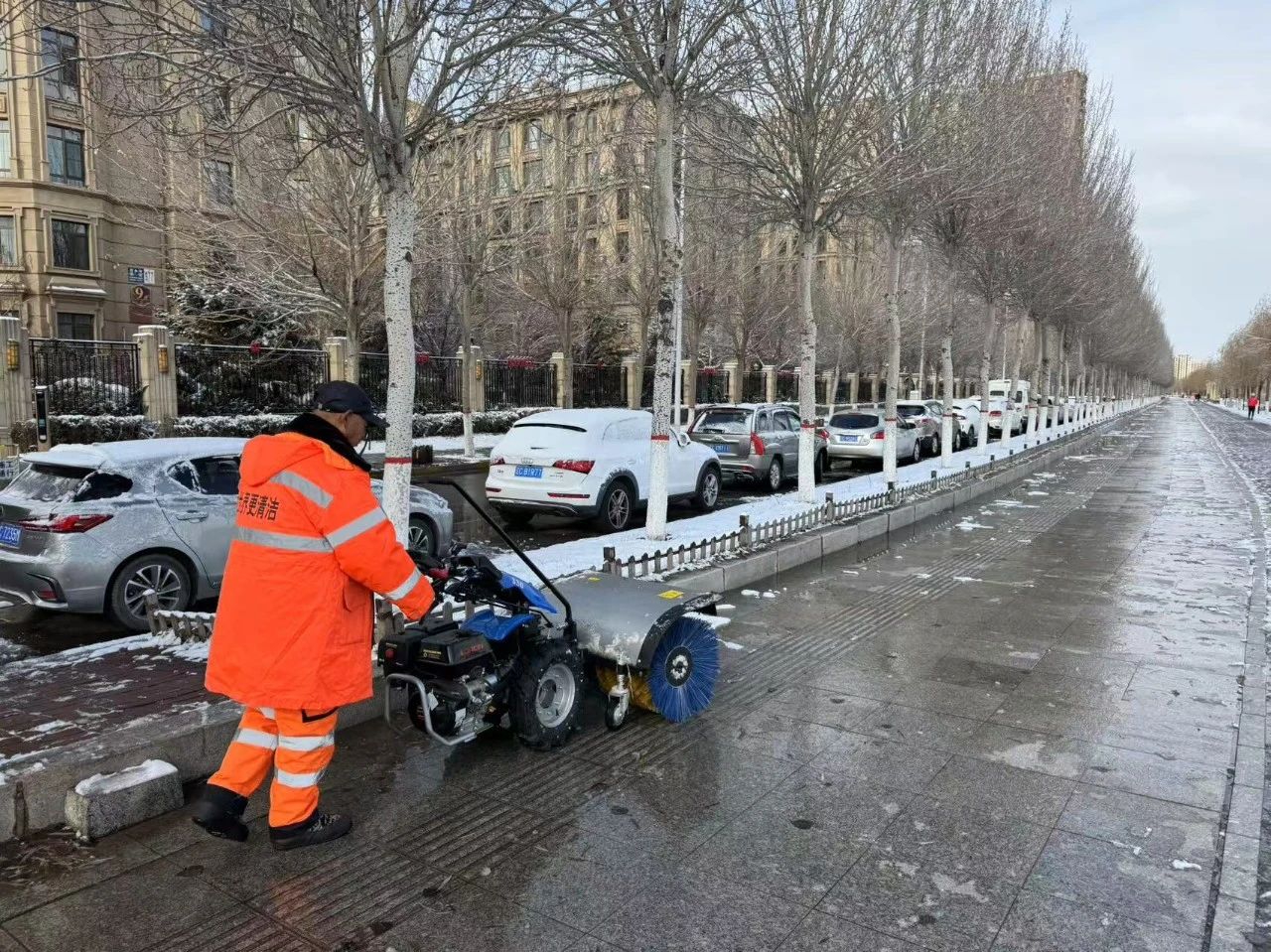 遼陽項(xiàng)目采取機(jī)械+人工組合作業(yè)的形式,對(duì)縣內(nèi)主次干道、人行道等反復(fù)清掃作業(yè),并隨時(shí)調(diào)配人員和機(jī)械車輛,做到清雪過程靈活機(jī)動(dòng),循環(huán)清理,確保雪下即清,雪停路凈,第一時(shí)間保障市民出行安全。